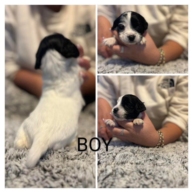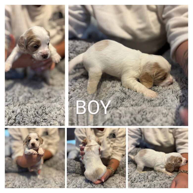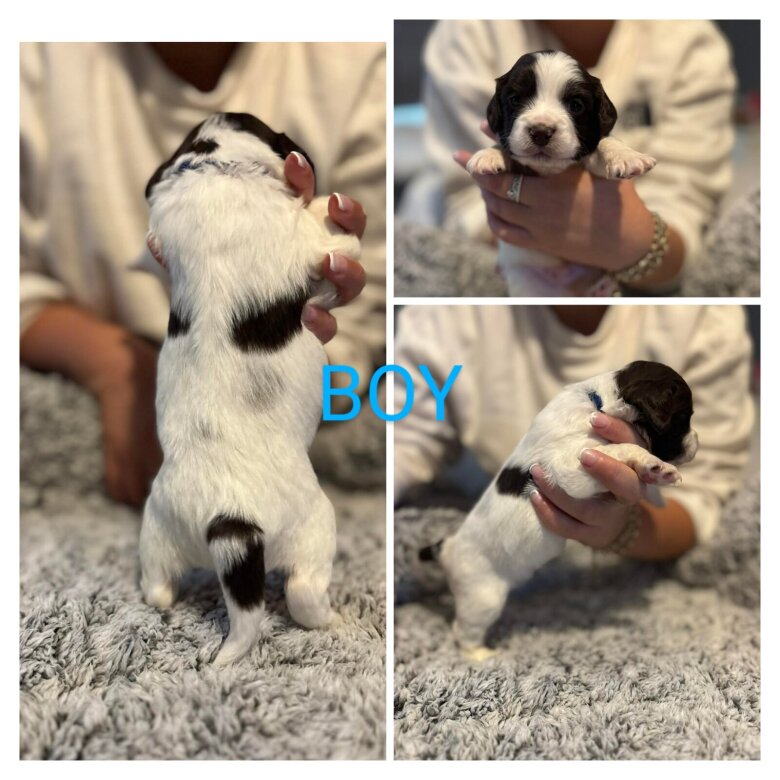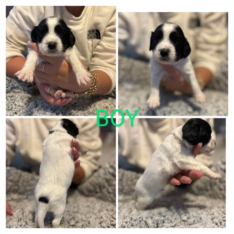 🐶✨ Ready for Cuddles! Beautiful Cockapoo Puppies! ✨🐶 Location: Worcester We are thrilled to announce that our adorable litter of Cockapoo puppies is looking to find their forever homes! They are full of playful energy, affection, and intelligence—the perfect family companions. Key Details: ready to leave 30th December Colors: A gorgeous mix of shades, including: 2 x boys White & Black, 2 x boys White & Black, 1 boy x white & Chocolate Brown, 2 boys x beautiful Light Brown & white Ready-to-Go Package Includes: ✅ Full Veterinary Health Check ✅ First Vaccinations (details of next dose provided) ✅ Microchipped (transfer details provided upon collection) 🏡 Bringing a Puppy Home: Cockapoos are known for their minimal shedding (due to their Poodle heritage) and their loving, eager-to-please temperaments. They thrive in a home environment and make excellent, devoted pets. Price: £1,000 per puppy. Serious inquiries only, please. We are looking for homes where these wonderful puppies will be cherished members of the family. 📞 To arrange a viewing or for more information, please contact me or reply to this ad.
