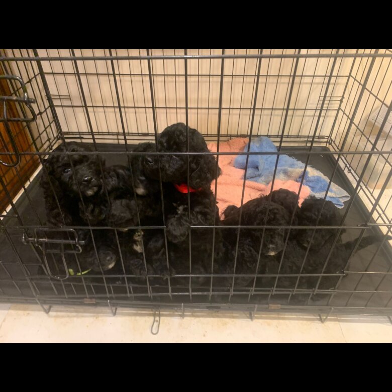 Our treasured gorgeous family pet Sally has given birth to 10 gorgeous black, tight curled cockapoo puppies, 6 girls and 4 boys.