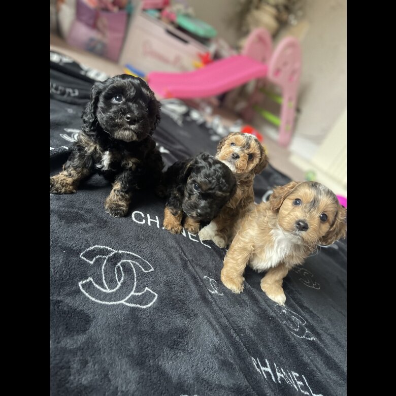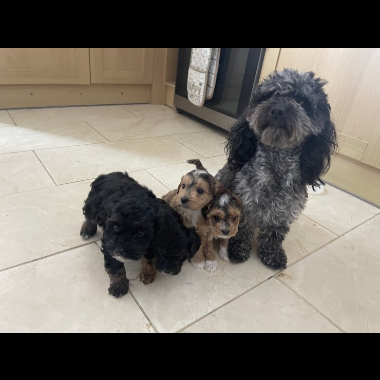 Our lovely girl Bella has given birth to 4 puppies 2 males and 2 female cockpoo puppy they are now 6 weeks old, mum is a blue merl and is very loving and friendly family dog. Looking for a good homes for our beautiful puppies, they very loving and cuddly like their mum and have been around children since birth, they will also have their first out of three vaccinations and micro chip when ready to leave and the next 2 vaccinations will be included. They have been wormed from 2 weeks old. These puppies are F1B puppies which means they are less likely to shed and are amazing for anyone with allergies, they will also be very fluffy. Dad is a red toy poodle, kennel club registered, he is also all health checked. All his paper’s included his family tree will be included with puppy 🐶 Puppies will come with free 4 week insurance, wormer and flea treatments. £1200 each a deposit can be made to secure your forever puppy Please contact for more information