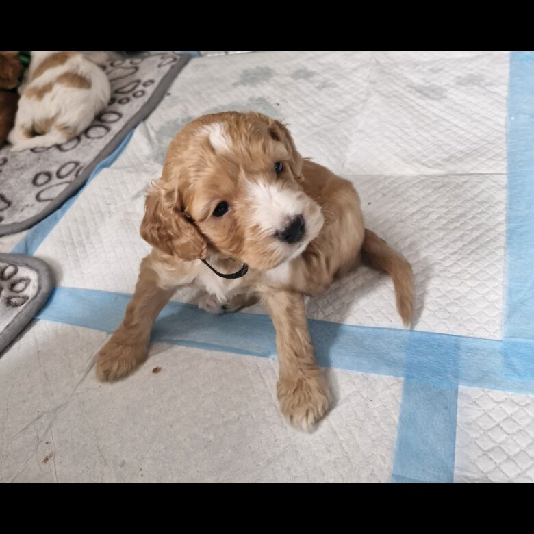 These gorgeous little babies are being brought up in a family home with 3 young children so will be used to a busy family home.. Although only 6 weeks weeks old they already respond to basic commands like "sit" and "paw", they seem to have inherited her abilities already. Toilet training has gone brilliantly and they have been absolute superstars.