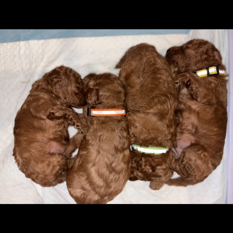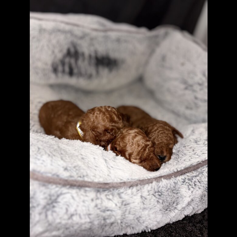 Born on 11th September 2025, we’re thrilled to announce the arrival of 4 stunning red Cockapoo puppies – 1 girl 3 boys– looking for their loving forever homes. We are however keeping the Girl.
