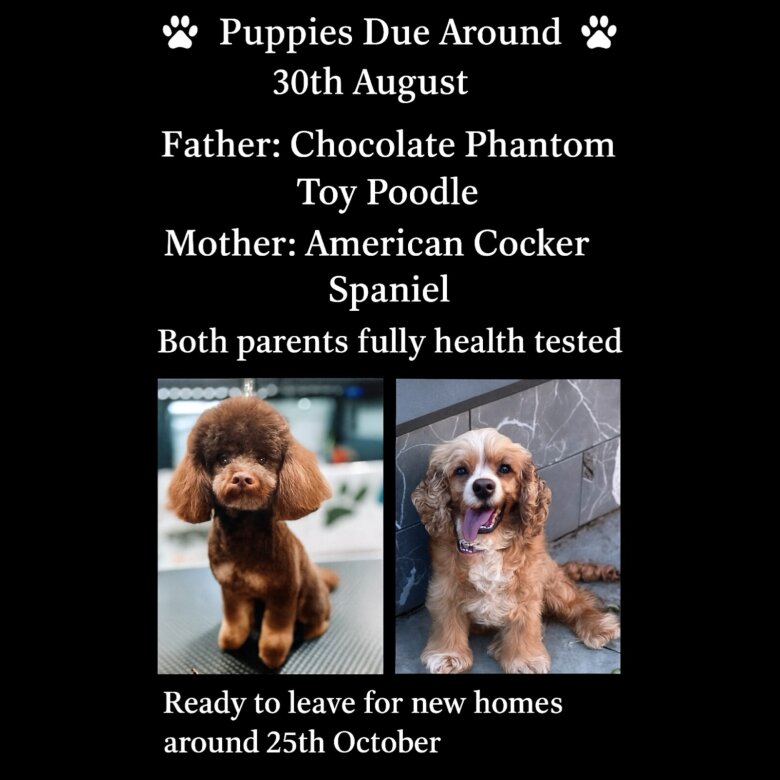 We are over the moon to welcome our gorgeous litter of F1 Cockapoo puppies, safely born on 26th August!