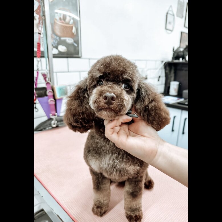 Dad: a teeny Chocolate Phantom Toy Poodle (just **** kg!), also fully health tested