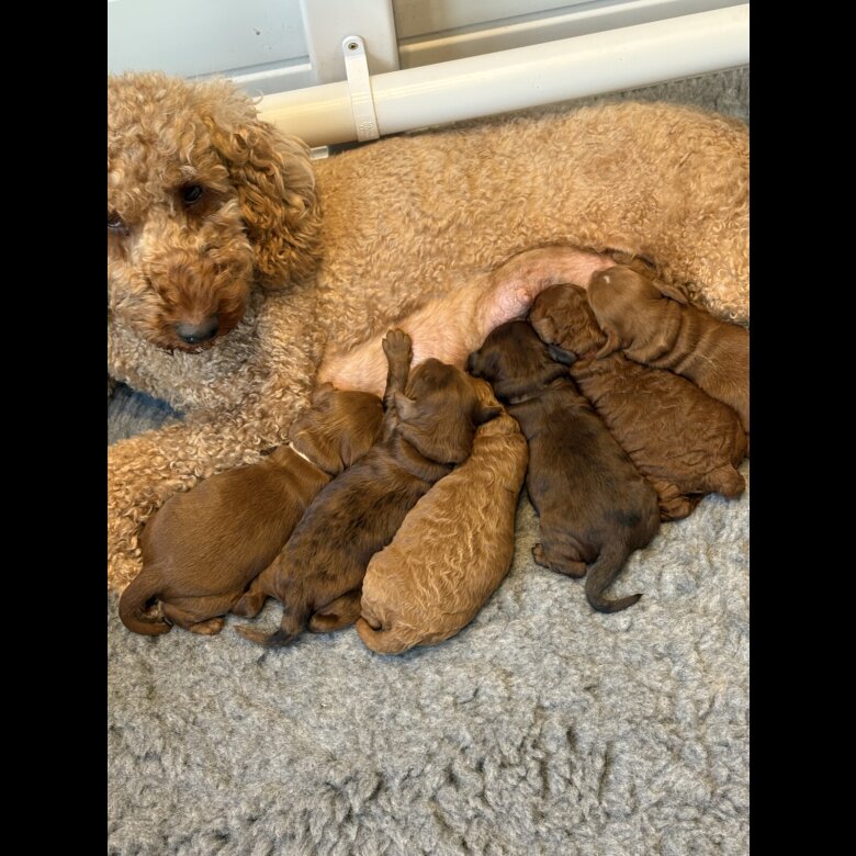 Our girl Pumpkin poodle is having another Halloween adventure this year. She has puppies: four boys, two girls. Beautiful