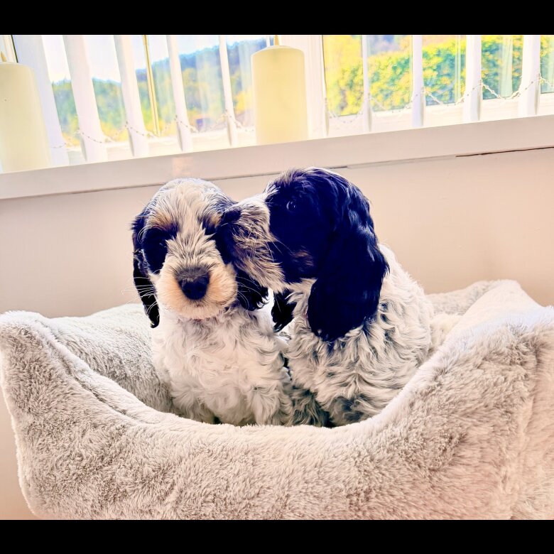 2 girls available **** meet their new families. Based in S **** amazing girl Bailey has given birth to 11 dna genetically clear F1 cockapoo pups born 14th February. Show type cocker crossed with a poodle product puppies with curly coats with wonderful gentle temperaments. Both parents have been dna tested for cost colour and texture to produce extremely rare blue roans, chocolate roans and tricolour . These colours are not linked with the merle coat colour which is also not associated with poodles or cocker spaniel breeds. To breed a merle cockapoo another colour has been added into the parents' linage. Merle is linked with increased health risks please do your homework. Pictures of Baileys previous litter is in this advert so you can get a general idea of what roan pattern will look like in adulthood. We have 3 girls available 1 blue and 1 tri roan. Female pups will be on average 7 Kg boys around 12 Kg at adulthood. Mum Bailey is a KC show type cocker spaniel and will be available to view with her pups. Dad Jiggy is a KC miniature chocolate particoloured poodle; we have photographs of him in owners information pack to keep forever. It is essential that we find the best home for all our puppies. So with this in mind, we will ask questions when you come to visit us. To guarantee the best match, we ask all potential owners to do their research on the breed prior to contacting us.
