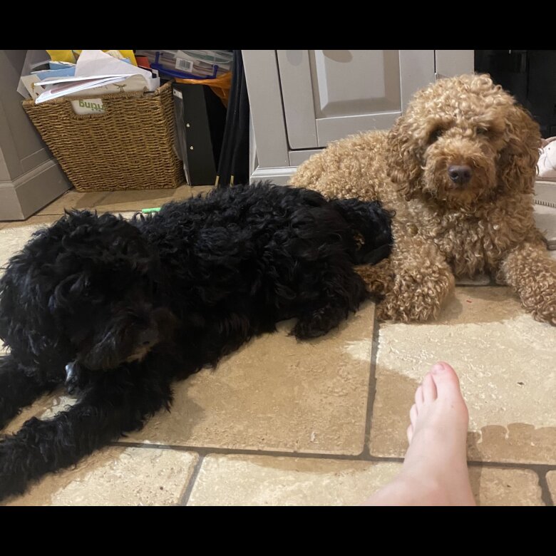 Father is our Harley. He is a deep fawn red F1 cockapoo (children always refer to him as ‘waffle dog’ from BBC). He has a very loving and loyal nature he is very proud and loves an evening cuddle. He is an absolute perfect example of his breed and is fully health tested.