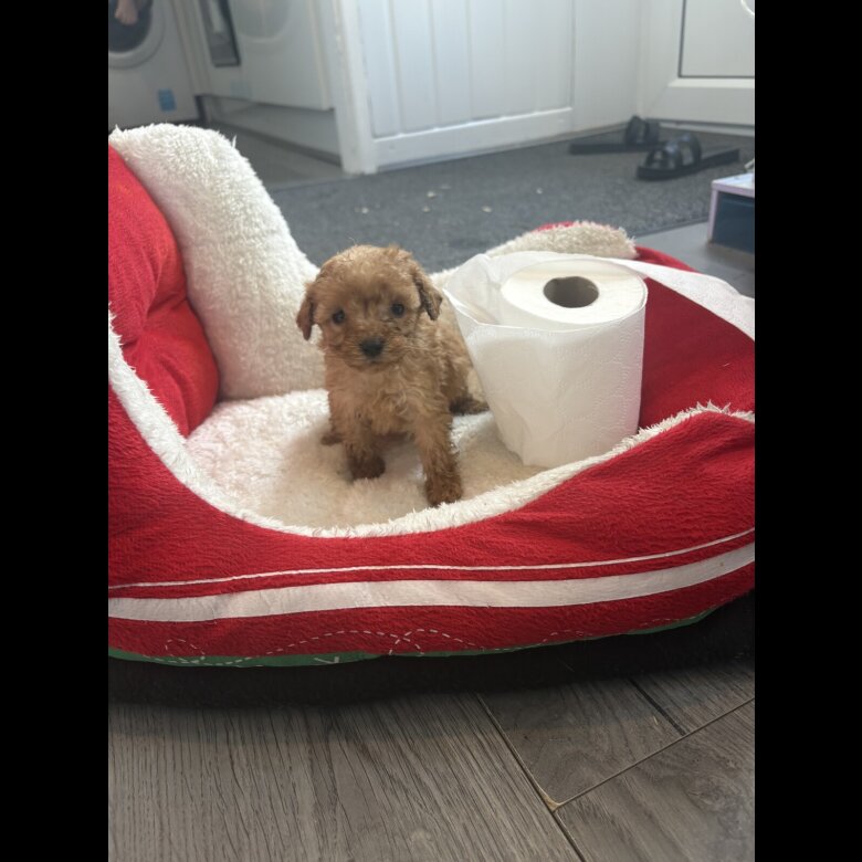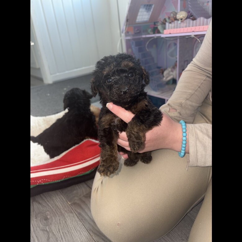 Our beautiful Cockapoo girl had given birth to 3 beautiful babies they are so tiny a bundle of curls,they loves lots of cuddles they will come with 1st vaccination,microchipped wormed n,wormed n flead to date and fully weaned off mom.dad is Meryl toy poodle stud ,I have 1 black girl ,