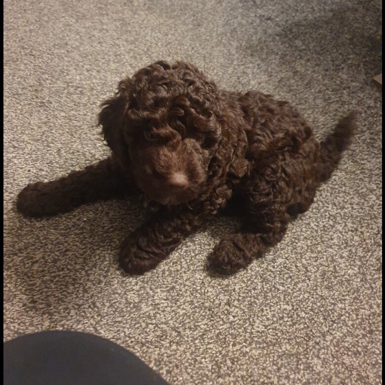 One male f1b cockapoo chocolate colour puppy looking for his forever home, mum is a chocolate cockapoo and dad is a kc registered miniature poodle both pets from loving homes.