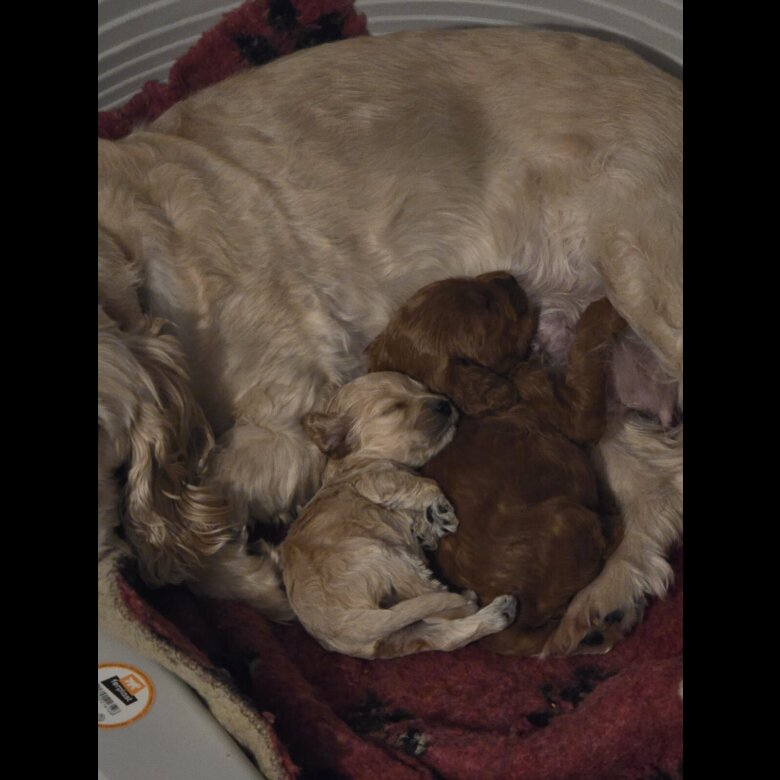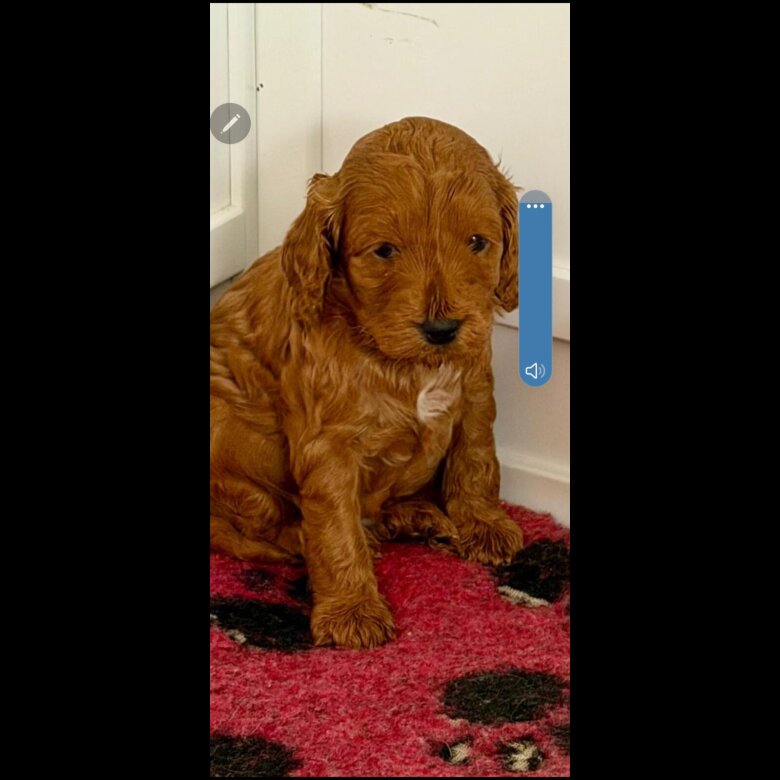 Two stunning cockapoo pups one apricot one deep red pra tested wormed upto date sire red miniature poodle mother apricot cockapoo used to children and well socialised with other dogs these pups must goto a good home ready end of march