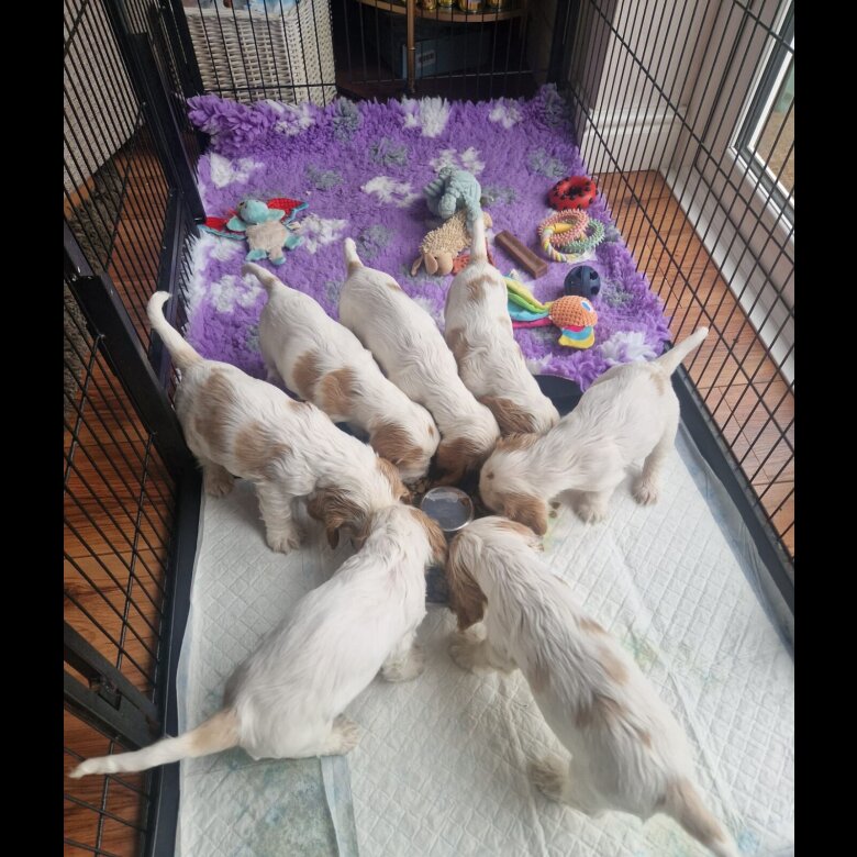 Our lovely girl Meg had a lovely litter of 7 orange roan puppies on October 18th. There are 5 girls and 2 boys .Both sire and dam are health tested. The puppies are raised in our family home and have been given the best start in life brought up in our living room as part of the family. The Puppies are ready to leave from the 13th of December. Feel free to ask for more photographs and text whatsapp or call thankyou .