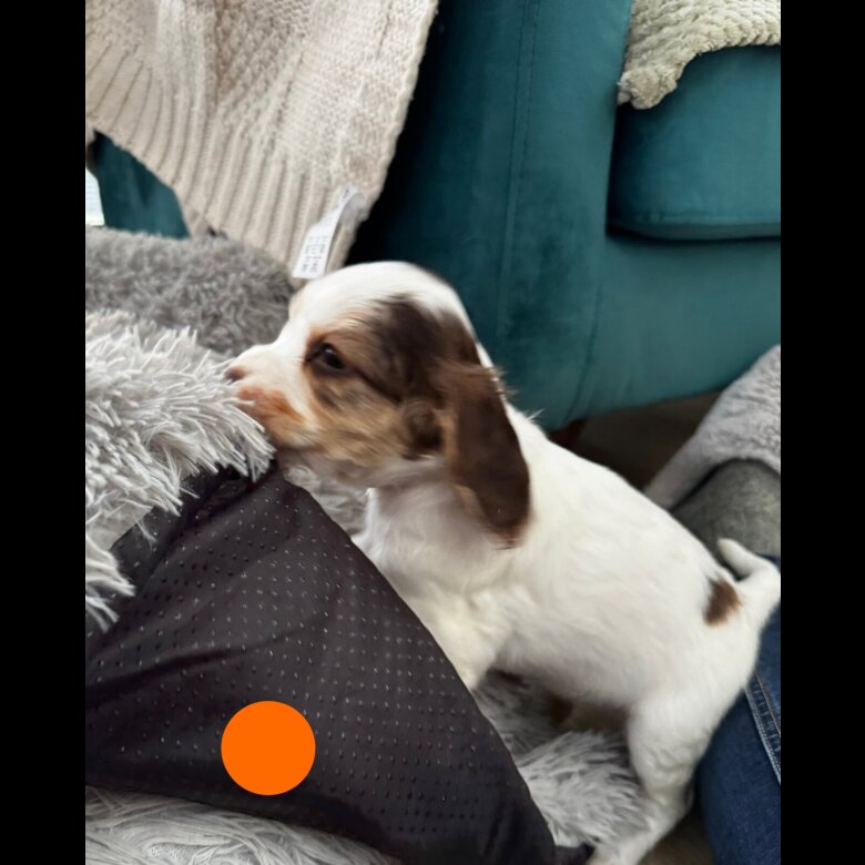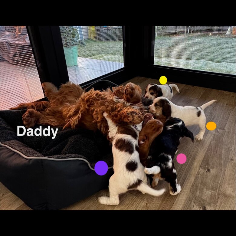 Alfred (poppa) is also our beloved pet. He is a KC registered Show Cocker (papers available for viewing as/if needed), chocolate sable. He too is an adorable loving boy who is mad for a ball and loves the outdoors as much as a cuddle on the sofa. He is now very fond of the puppies and enjoys play time with them (obviously supervised!) Both parents have been with us since they were pups themselves.