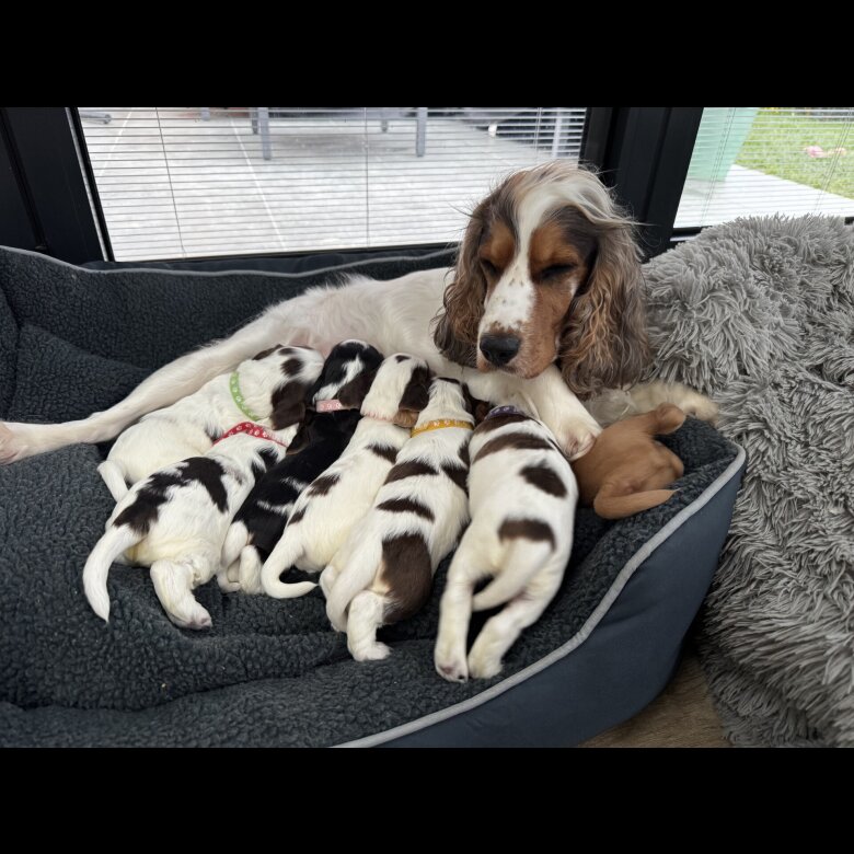 Our beautiful working cocker spaniel Nala has just had her first (and it will be her only) litter of adorable pups. Thy are being raised in our family home with both parents, cats and 3 kids. This is a busy house and the puppies will be well balanced dogs.