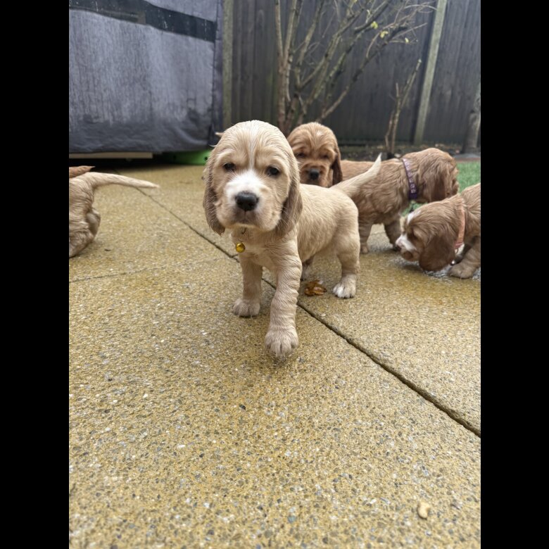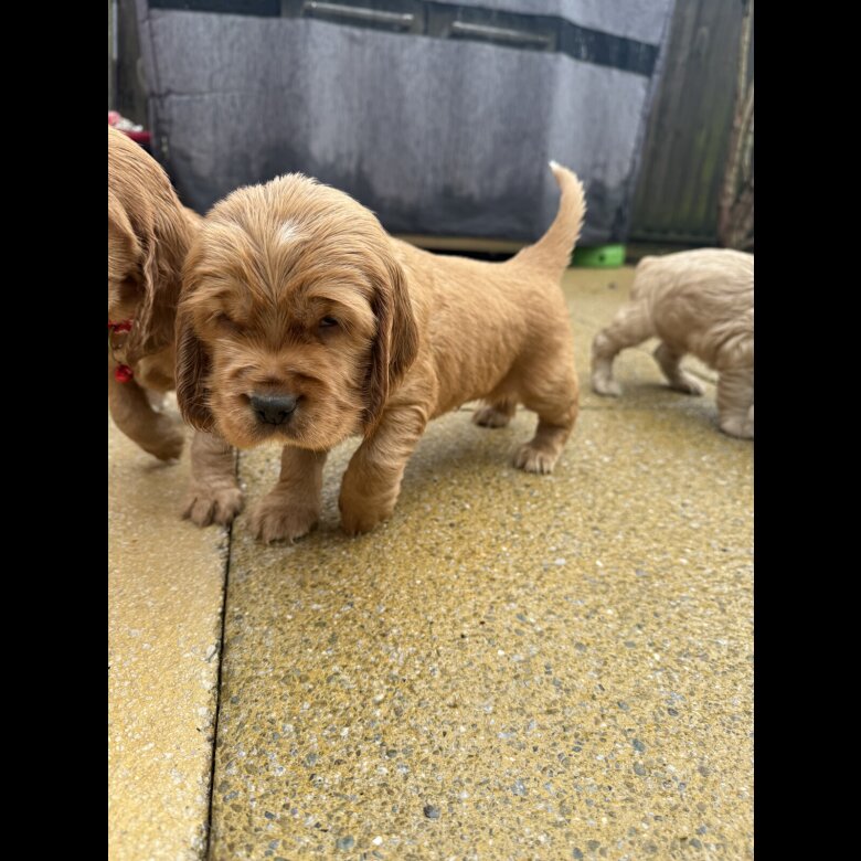 Here we have our beautiful gold English Coker spaniels!! Both mum and dad are our dogs and can be viewed with their parents on coming to meet the puppies!!! We pride ourselves in the quality that we offer as we have had previous liters from them and how amazing it is that you can chose knowing that you can meet both mum and dad!!!