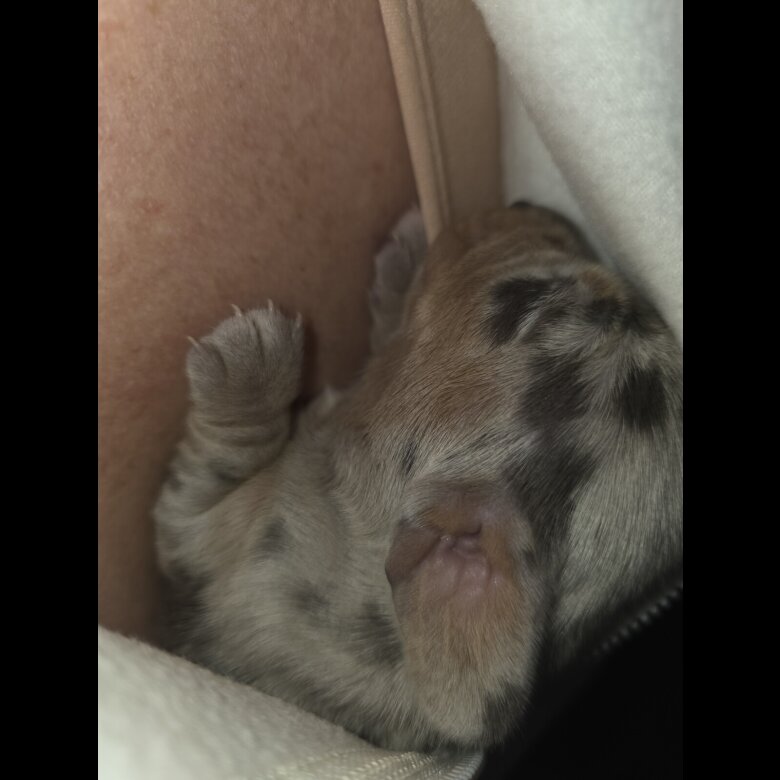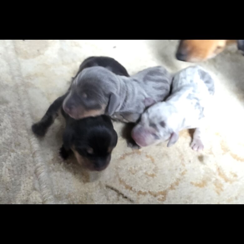 In a cozy home filled with warmth and the gentle nurture of a brilliant mother, a stunning dachshund named Nelly, gave birth to three tiny miracles. She had been nervous, but her human family had created a perfect nest for her and her babies in a quiet corner of the living room. Soft blankets were piled high, alot of coffee and a small nightlight cast a gentle glow over the birthing box. Nelly, a proud and loving mother, watched over her pups with an unwavering devotion.