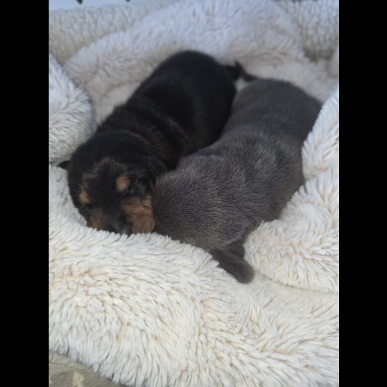 Next came a little boy, a sleek black and tan pup with a coat like velvet. He was the most outgoing of the three, a little explorer who was always the first to try to crawl out of the whelping box. They called him Coal, He had a playful spark in his eyes and a mischievous energy that promised a life of joyful adventures.