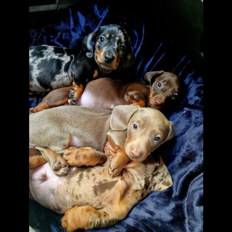 Mum & dad are KC reg, & we'd like our pups to find forever families, where they'll be at the heart of the home & loved. Mum is blue & tan, dad is chocolate dapple. Both parents are top quality dachshunds with good breeding, excellent conformation & very pretty faces. These puppies will grow up to be just like mum & dad.