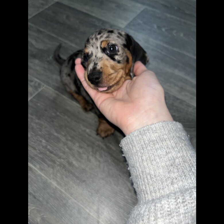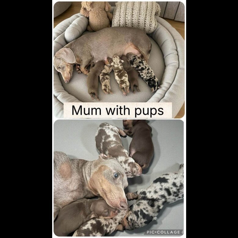 My beautiful Isabelle has had a litter of 4 stunning miniature dachshund, 2 boys and 2 girls. they are kc registered, have been microchipped and flead and wormed to date. She has been extremely amazing mummy to them. Mum and dad have amazing temperaments and pups are being well socialised with other dogs and young children. They are familiar of household noises and getting used to solid foods. I only want them going to loving homes were there needs are met as I absolutely adore my fur babies .A deposit of £250 will reserve the pup but will be non refundable .Please only contact if your sure and can offer loving homes as they deserve so much they will be ready to leave mum on the 12th of December.