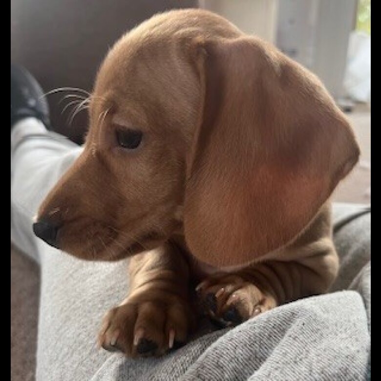 We have a beautiful litter of cream miniature dachshunds ready for their new homes, aged 10 weeks. Mother and father both have excellent temperaments, sweet natured and placid (not vocal dachshunds as they can sometimes tend to be). Mother is placid, affectionate and quite submissive to other dogs. Father is calm, gentle and loves a warm lap.