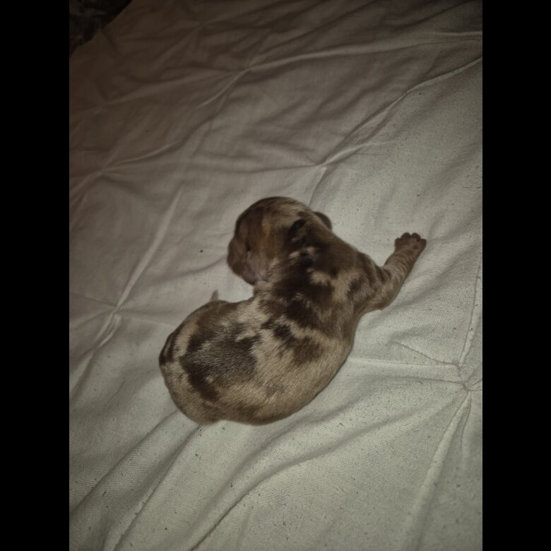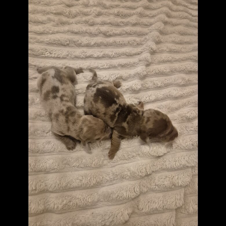Mum is 4 years old, very healthy and gorgeous, caramel complexion. The dad is a silver dapple with green eyes.