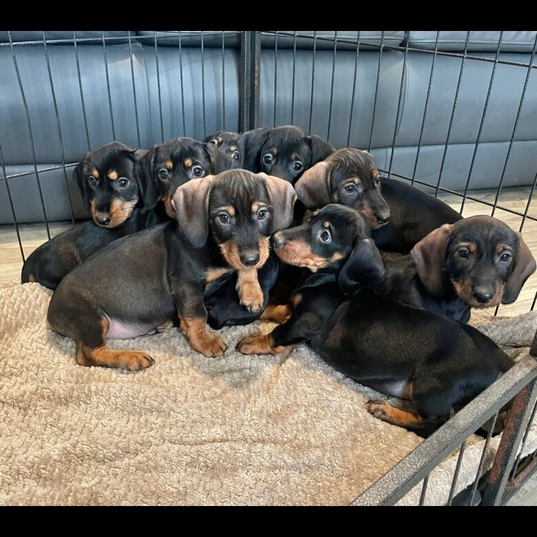 We have a stunning litter of standard size Dachshunds puppies looking for their new forever homes, we have Girls and Boys available and they can be seen in our home with their mother who is our smooth coat chocolate and tan standard dachshund. Father is also a standard size he is Black and Tan smooth/wired haired.