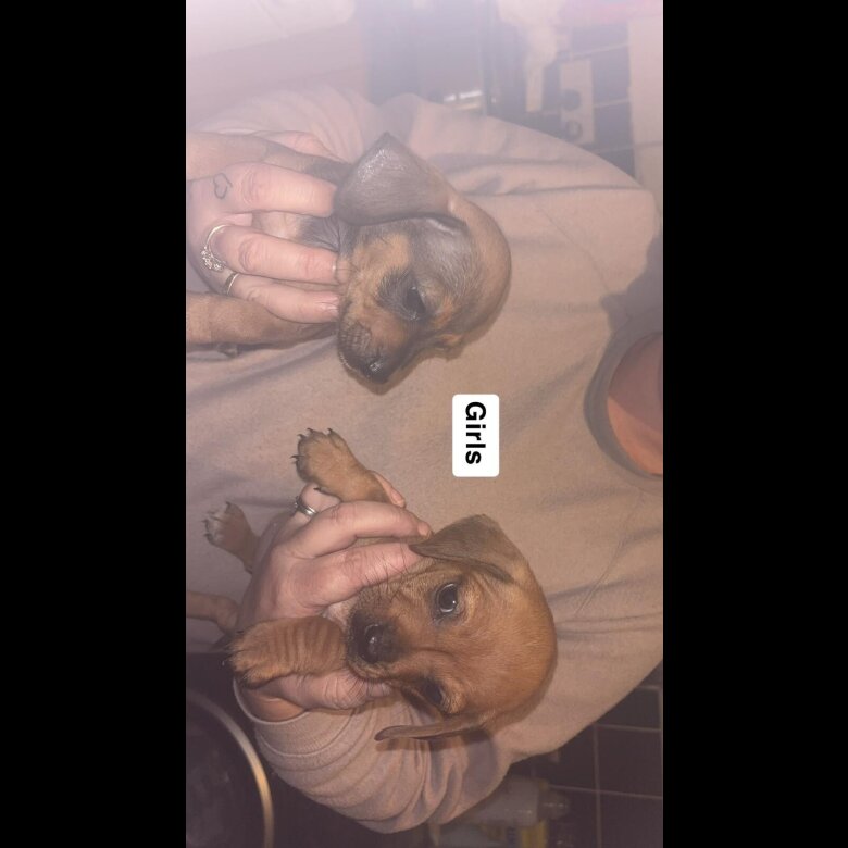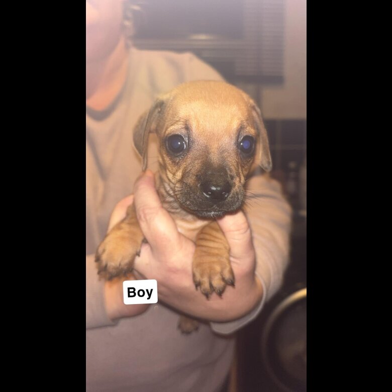 We have 7 gorgeous dachshund cross jack russell looking for their forever home. Mum and dad are our family pets and can been seen they are flead and wormed up to date. Welcome to view anytime. All eating and drinking on their own mum is away from them now as she's had enough. Pups are round the kids all time very playful and loving. Please no time wasters as that's all we've had. Any questions please ask away. Many thanks for reading. 400 each. Jab and chip will be done when ready to leave which is in next week or 2.
