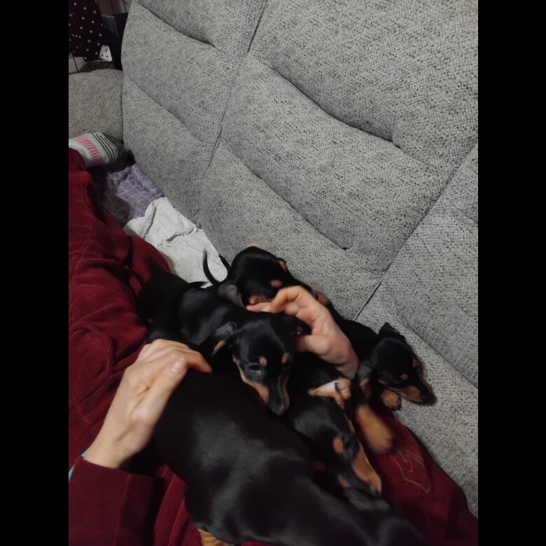 Our dachshund mum Rizi has 5 puppies. 3 girls and 2 boys. They are born on 3th of November. They are ready to leave a house. They are very agile and curious.