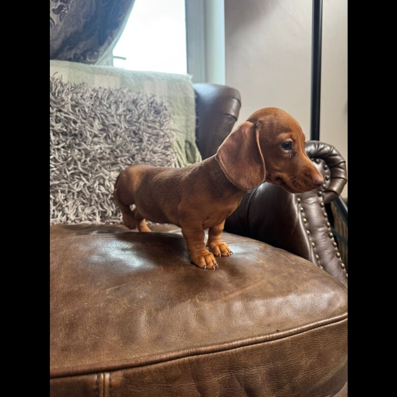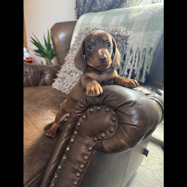 We are pleased to announce the arrival of our beautiful litter of smooth haired miniature dachshund puppies. We have the choice of a beautiful Black and Tan(£900), Red (£850), Blue and Tan (£1100), Chocolate Dapple (£1100) or a Chocolate and Tan(£900). Puppies come with there first vaccination given, fully vet checked, frontlined, fully wormed and microchipped. Mum is here to meet and whilest both parents are kc registered puppies won’t be as we would like our puppies to go to first class pet homes only. If you would like to give one of our puppies a forever home just call, message or email