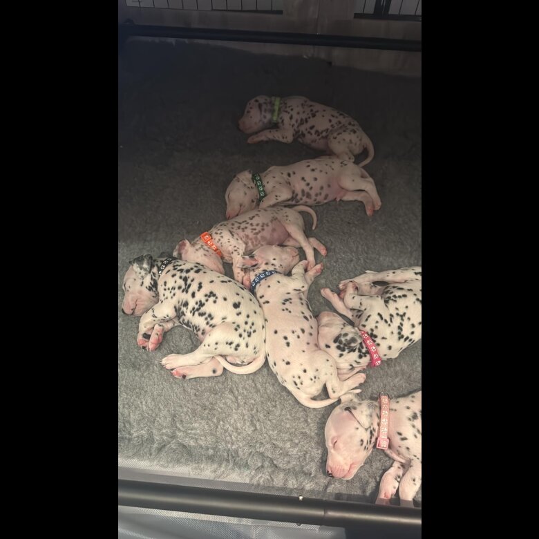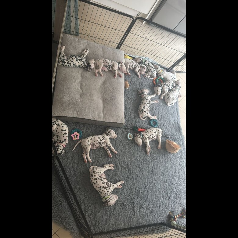 We have a carefully raised litter of 12 Dalmatian puppies, born on 8 December 2025, from two of our much-loved family pets. Both parents are available to view at home.