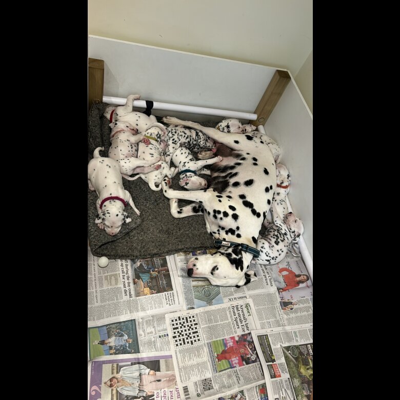 Both puppies have a Low Uric Acid gene, which effectively protects against Hyperuricosuria, which can cause bladder and kidney stones in dalmatians. This is an important health advantage, which means these puppies will not require a specialised diet to prevent stones.