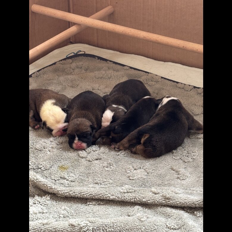 Chocolate tri colouring, Mums second litter. Vet checked, healthy pups. Mum is calm and lovely temperament.