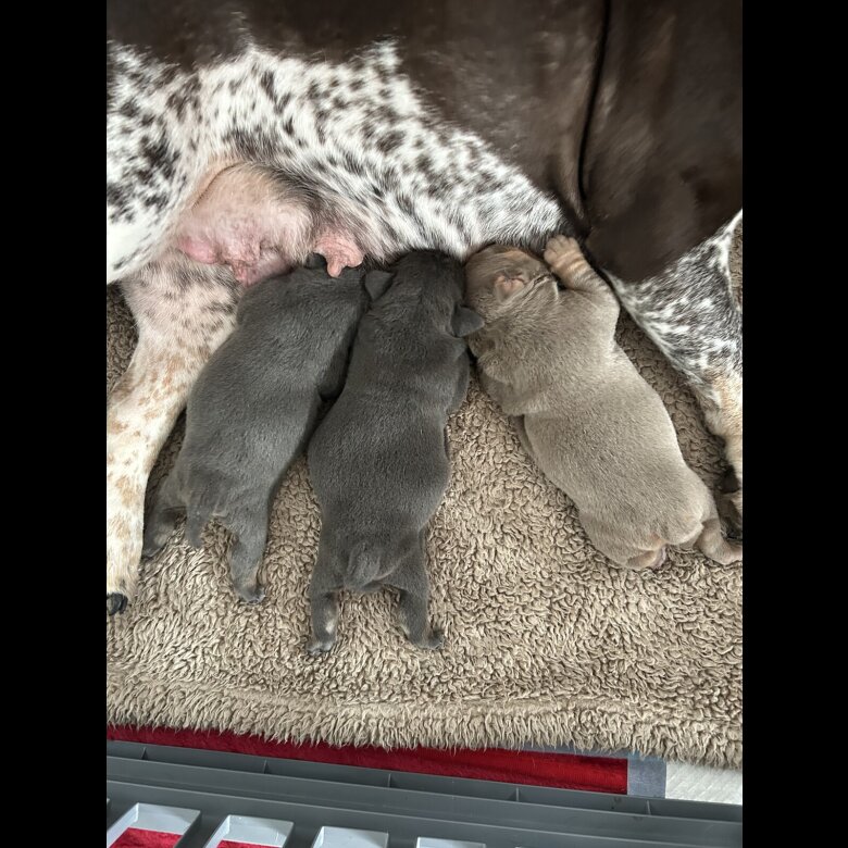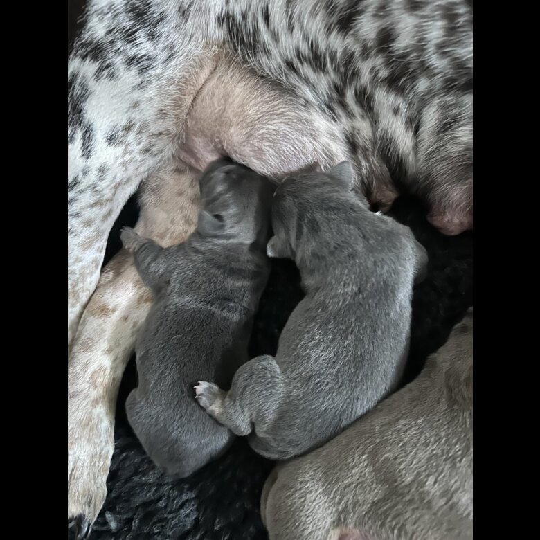 They have been weighed throughout whelping and are all now weighing up to 1kg and coming up to 2 weeks please know these pups are going to be heavy set old English bulldogs.
