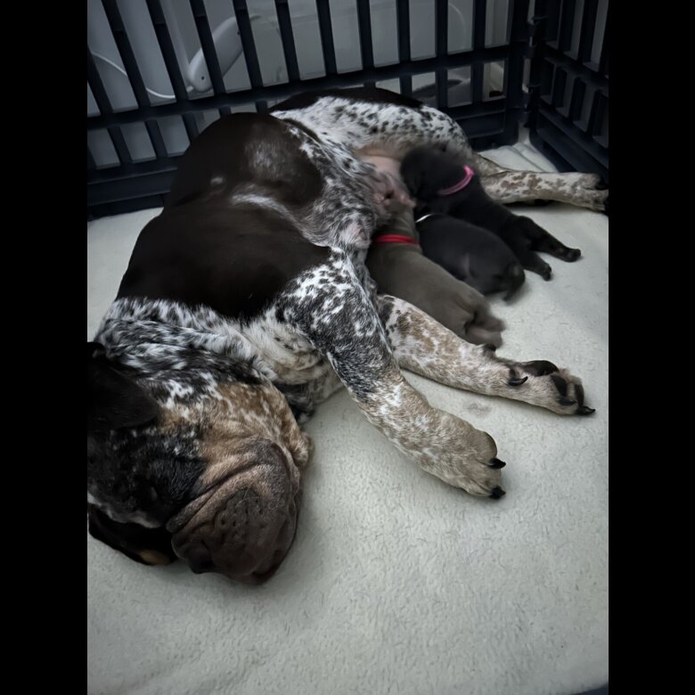 Our puppies sleep in the kitchen but have free roam downstairs and will start to venture outside when they are old enough and the weather permits.