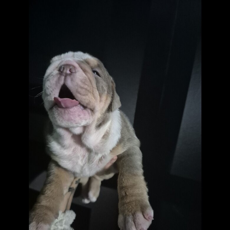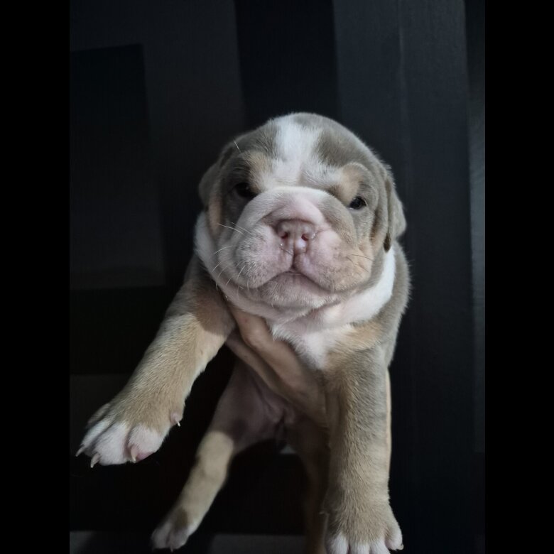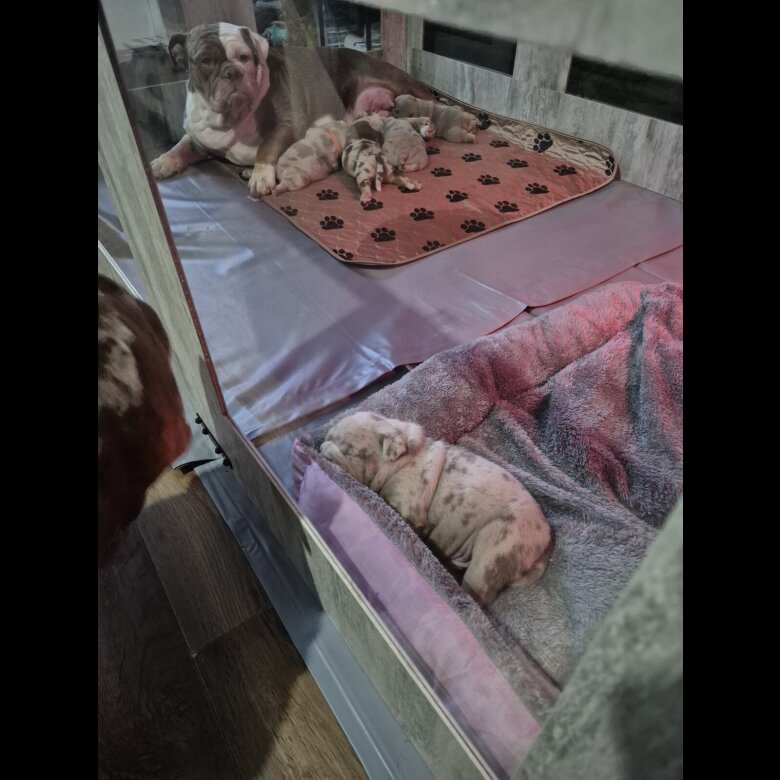 Doris Our Girl,The Mother Of The Pups, who Is A lilac tri tan New English Bulldogge