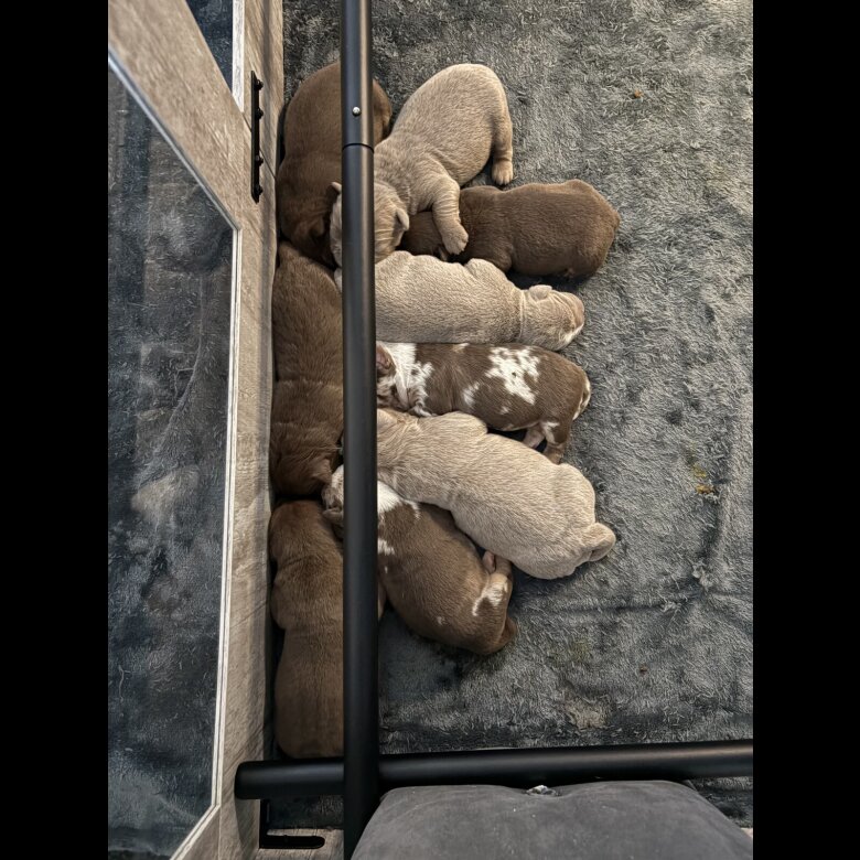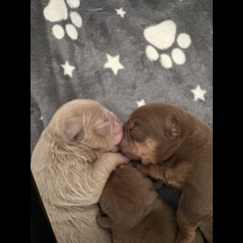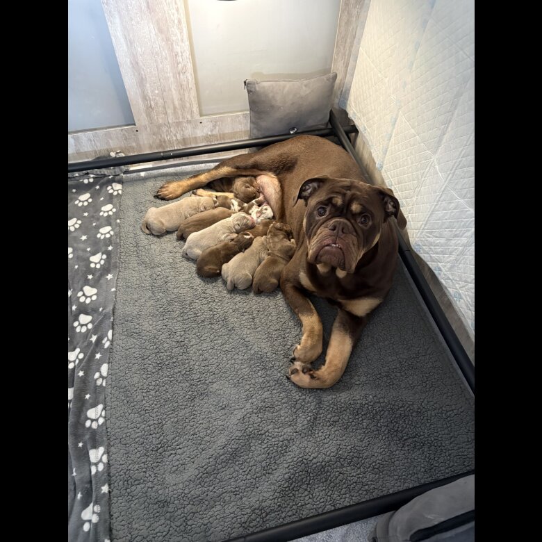 Dad to pups is also an olde English bulldogge he is a mammut (fluffy) and a stunning tri Merle