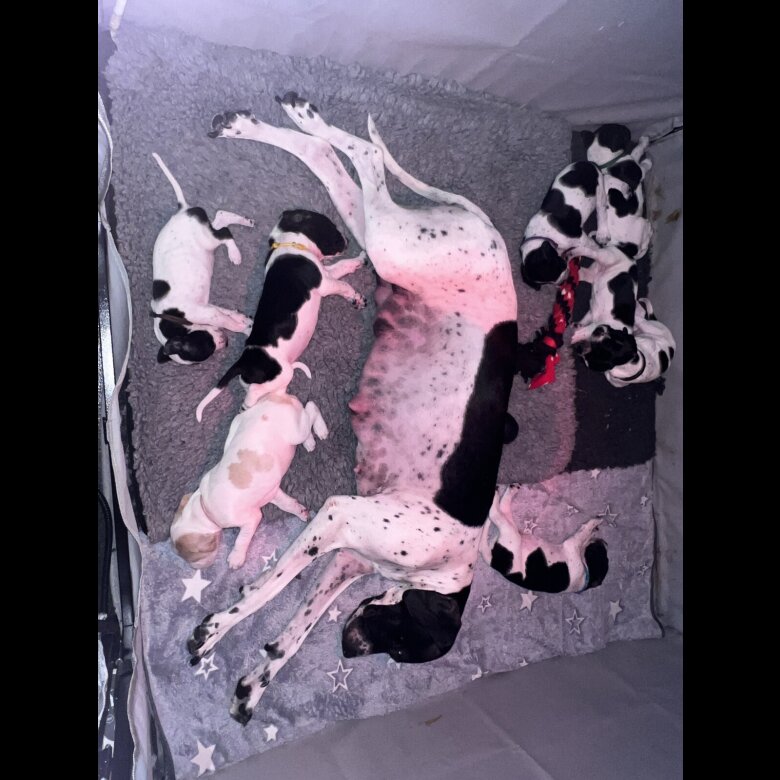 Pointer Puppies Available w/c 16th March 2026. Field and show potential but would make excellent pets; both parents have very good nature and highly intelligent and trainable. Pups are currently 5,5 weeks old, dewormed. When moving to their new family homes they will be microchipped and vaccinated with full VET checks and RKC registered. DM me for applications and more information or viewing arrangements. Based in Lancashire, UK Lemon Female reserved. 4 males 2 females all black and white available.