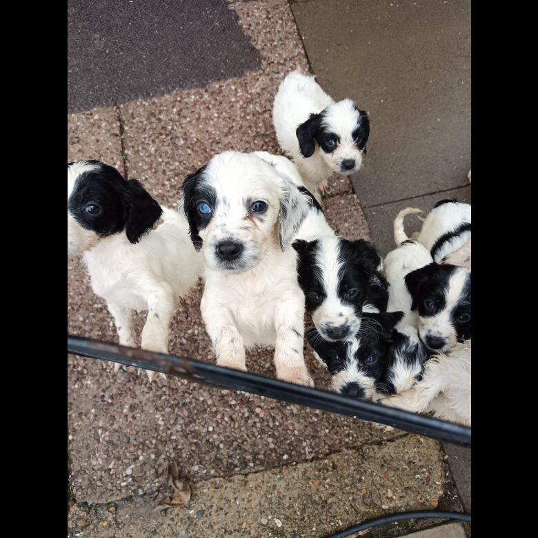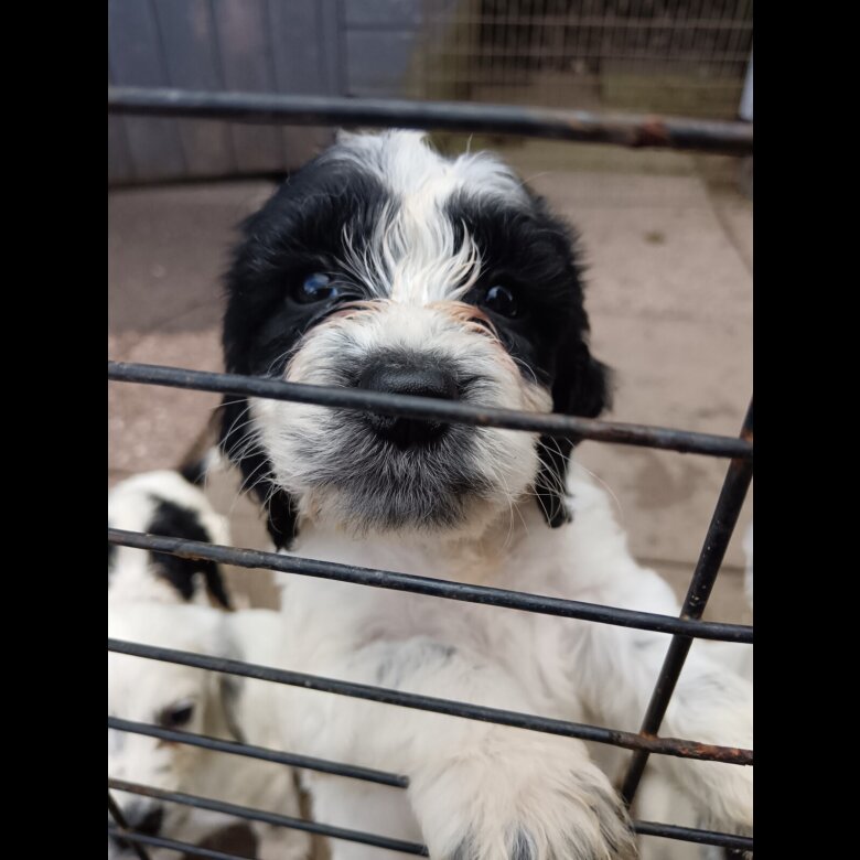 Springer poo puppies 9 weeks old mum and dad can be seen wormd and fled ready now black and white fluffy