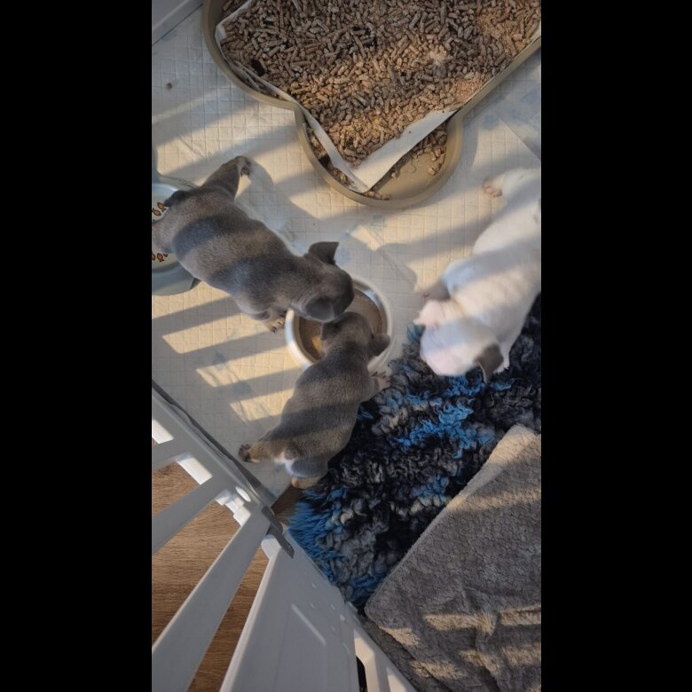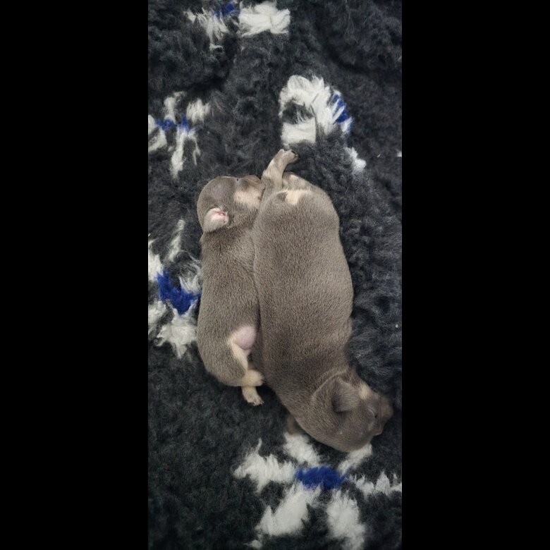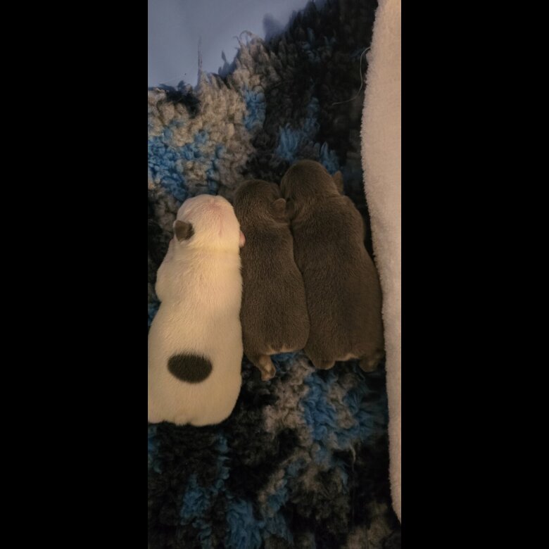 Mother and father both KC reg and fantastic family pets with no health skin or allergie conditions. Of the lilac and fawn lines. Pups will not be kc registered but have been health checked and cleared, microchipped and first vaccination have been complete. They have had complete family round the clock care are are amazing little pups. They have been kept up to date with worming, toilet training still in motion and feeding great on complete puppy food. Lilac and fawn male 1200 Lilac and fawn female 1500 White pied 2000 Viewing welcome Ready to leave from the 13th march before mother's Day. £250 deposit secures pup. Located DG12 area Personal Delivery available with a fee. Feel free to msg or call on WhatsApp