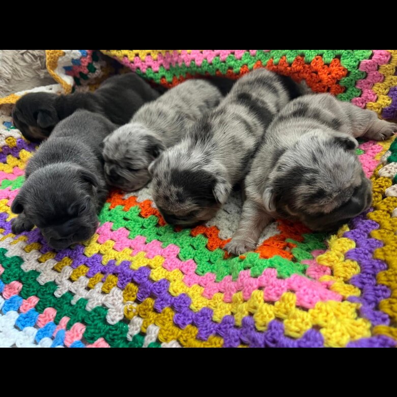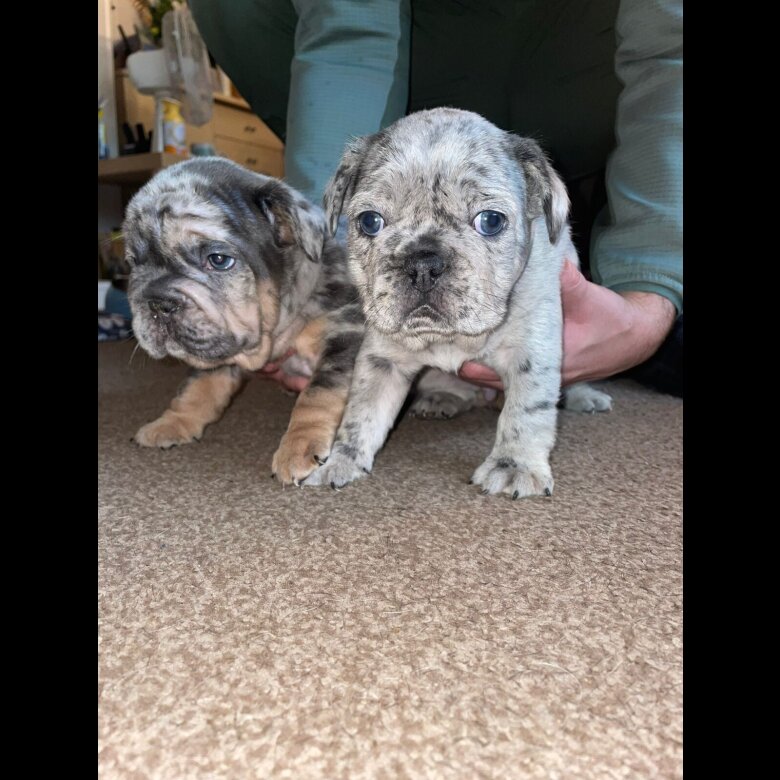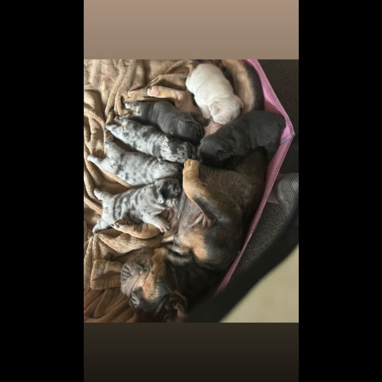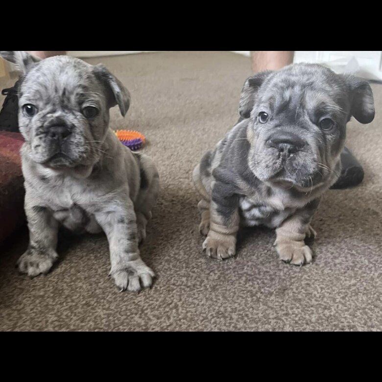 We are so happy that we have finally got to this point with our girl Stella and she has had 5 amazing healthy puppies. Stella has been kept from our first litter with our girl Fendi and we couldn’t be more happy with how she has turned out. She is a loving mum and the puppies are being brought up in a loving home and will be a perfect addition to any family. Waiting on DNA but we can’t wait for the results as this is the litter we have been most excited for. MUM Stella is a Frenchie and one we had to keep from our first littler as she was too good to let go, she is KC registered and health checked. DAD Rosko is a full fluffy merl who is in the prime of his life and has been full health checked, he has had over 5 healthy, quality litters and he hasn’t disappointed with us. Puppies that are available:£1500 1x boy = blue n tan carrying fluffy,£1500 1x boy = blue n tan carrying fluffy, £20001x boy = merl carrying fluffy,£2000 1x boy = merl carrying fluffy, £3000 1x girl = merl carrying fluffy,Prices can be negotiated etc. More pictures and videos are available and they are carrying no pie and brindle. They are ready to leave on 20th October and will be kc registered/microchipped and full health checked, 5 weeks free insurance with Agria. Will be taking deposits and can pay of up until they are ready to leave.