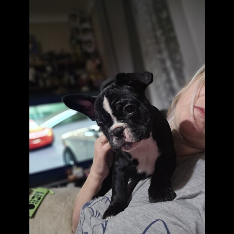 Little girl frenchie looking for her forever sofa she is a very loving girl and is ready now she is the black one the brindle girl is also looking but she will not be ready till she turns 12 weeks Very cute frenchies for sale will come vet checked microchip done flee and wormed and first vaccination done they are being very well handled with children and a noisy house some very cute colours mum and dad can be seen dad has full kc paper work but mum's got lost welcome to come see them vets booked for 23rd