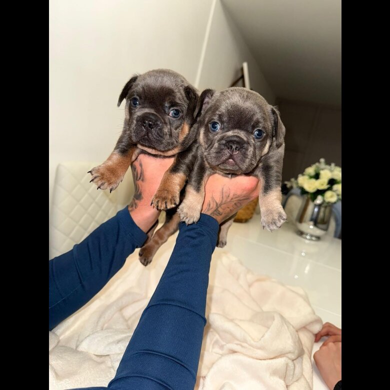 Two french bulldog puppies for sale one boy and one girl both are stunning dogs and can be seen with mom. Dad is a fluffy frenchie and can be seen in the advert.