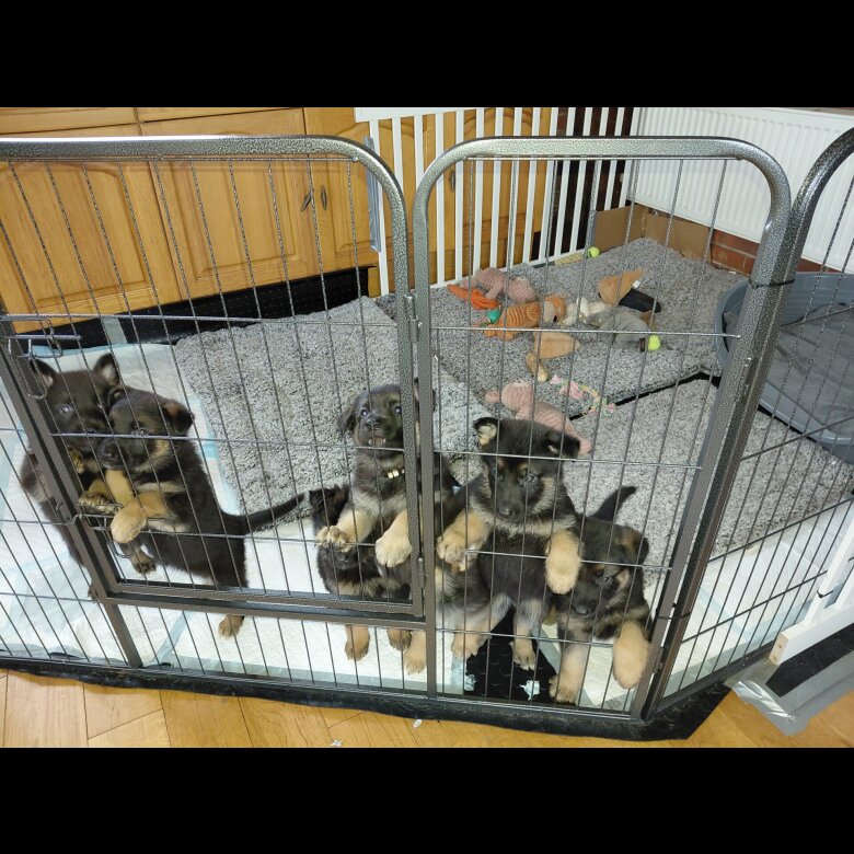We have 7 gsd puppies for sale, from our own pets Eva & Freddie. they are both 2 years old and came from different breeders so are in no way related. the pups are now on solid food as well as being nursed by mom and have taken really well to their food and are happy to lap water. they are being advertised elsewhere and will be ready for their forever homes from 18/02/26, all are microchipped and treated for worms and flea's, their 1st injections are booked for 17/02/26 ready for collection, viewing is by appointment only by calling Debbie and can be seen with both parents we are located in Boston, Lincolnshire, UK. PE21 8 area priced at £**** and a deposit of £**** will be required to hold any pup you are interested in.