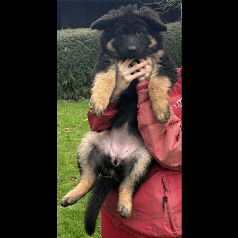 Opalia GSDs have a litter of beautiful big chunky GSD puppies. All the pups are long coats and dark black & tan.