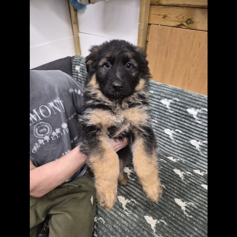 Beautiful long haired German Shepherd looking for a new good home. Ready to go. 1st vaccination and microchip .