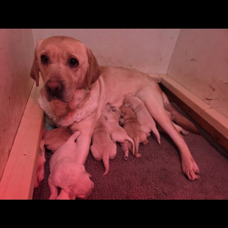 Mum is our KC registered Labrador, and dad is our much-loved Golden Retriever. Both parents are regularly vet checked and are exceptional examples of their breeds — playful, highly intelligent, affectionate, and well-balanced in temperament. They are raised as part of our family, and the puppies are being brought up in the same attentive environment.