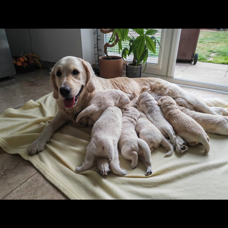 Beautiful, big puppies. Mother is American Golden Retriever and Dad is KC stud. Both parents are large. Colour of mum: Beige