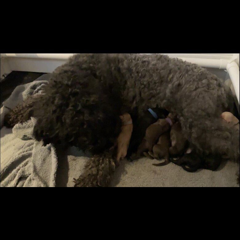 The puppies coats should be curly and low shedding. Toilet training will begin as soon as the puppies are fully weaned to help facilitate an easy transition into their forever homes. I am happy to offer advice and support throughout the puppy's life. NON-Refundable deposits of ยฃ300 are being taken to secure a puppy with the remainder payable on collection. New owners are welcome to visit mum and her puppies as soon as the puppies are weaned, I will in the mean time send regular Pupdates and videos so that you can keep up to date with your puppies progress.