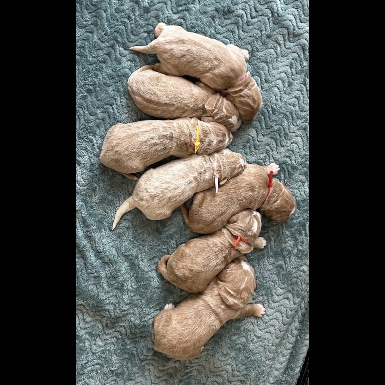 Farrenburg (KC Affix) are delighted to announce their latest arrival of a stunning litter of Double Doodle puppies, 3 boys and 4 Girls. From fully health tested and Genetically screen parents.