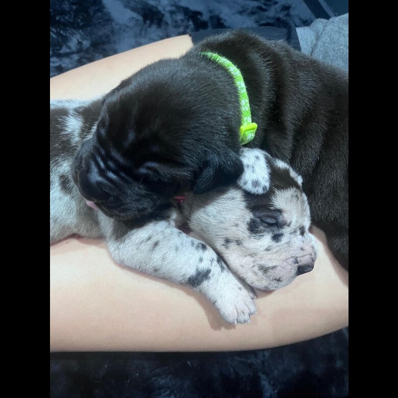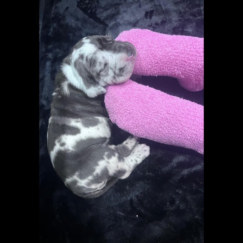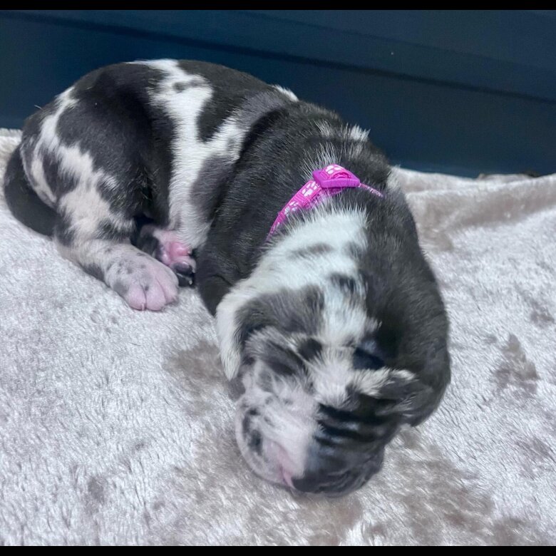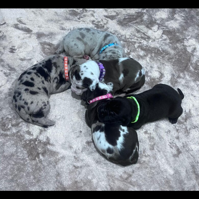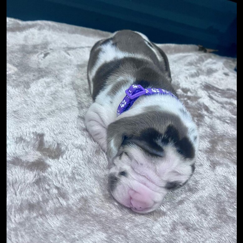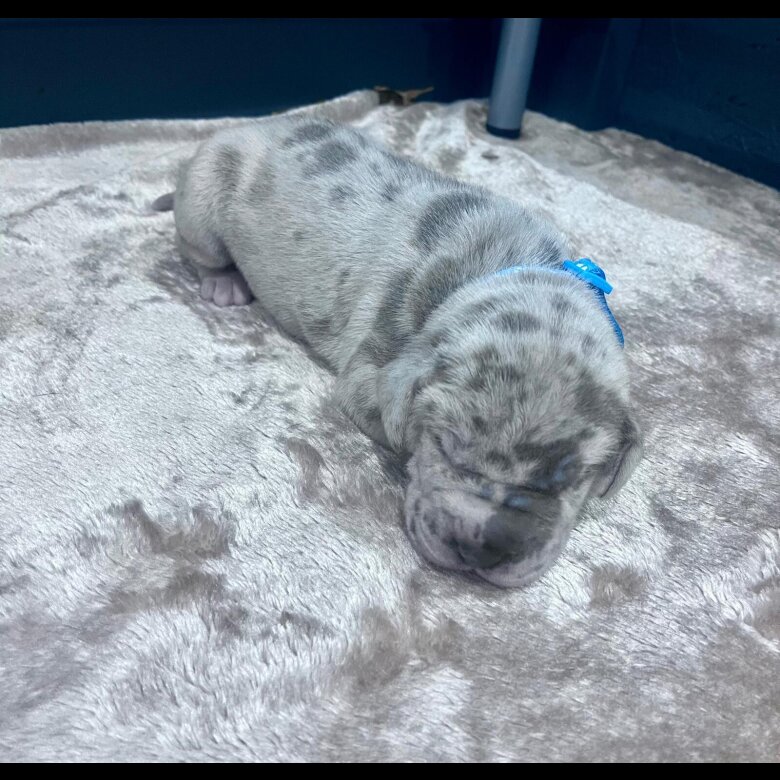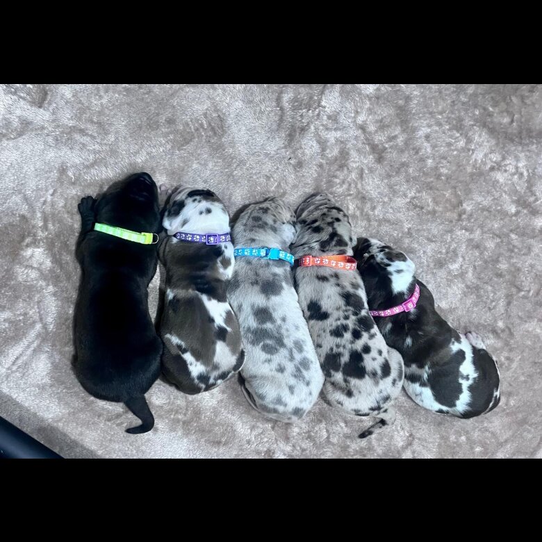Mum is a harlequin and Dad a stunning solid blue.