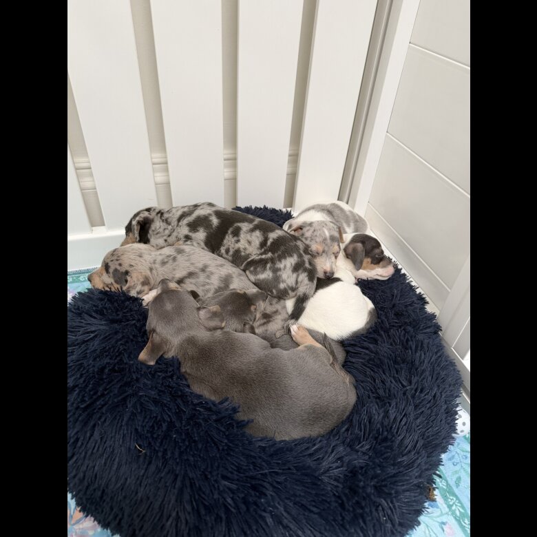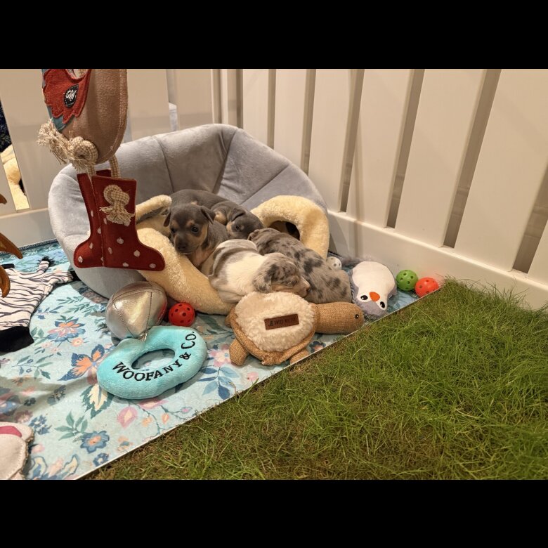 Our puppies are raised in our family home with all of the sights, sounds and smells that come with that. From as soon as they are born until the day they leave we also play a variety of sounds in the background to get them used to things they may not hear in our home such as babies crying and cat sounds. In our home they hear everything from the hoover, oven and hob, air purifier, electric toothbrush, startle sounds such as doors closing in the wind, things being dropped all whilst they are safe and learn to cope with unexpected circumstances.