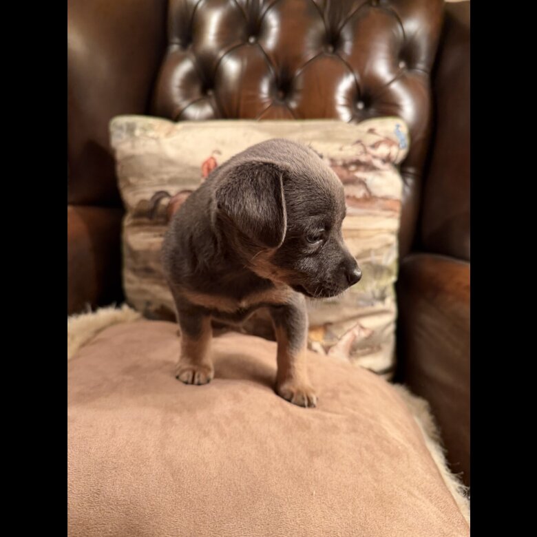 1. Barkmoral Little Drumer Boy (Tipple) - Blue and Tan boy with white toes and markings on chest and tummy